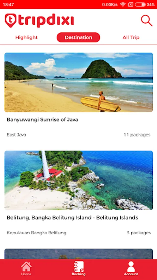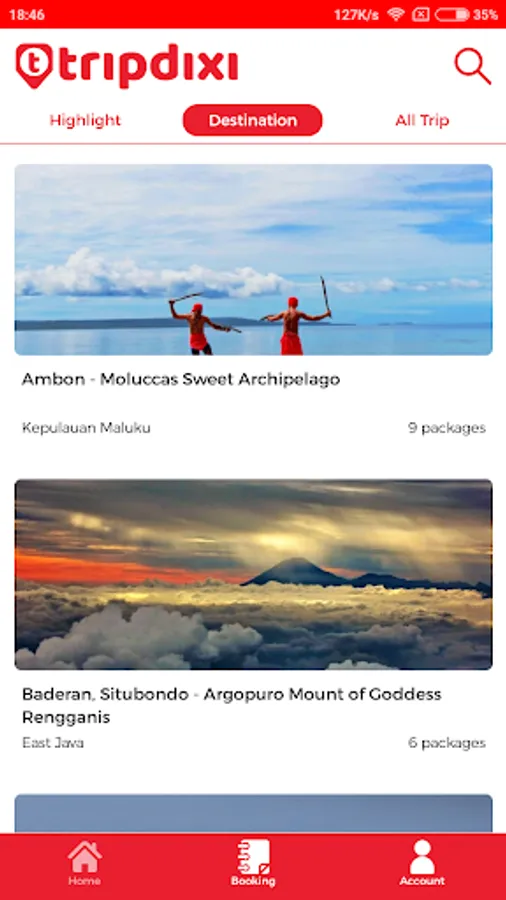 • Discover: search trip packages based on location or activities (hiking, diving, extreme, etc)