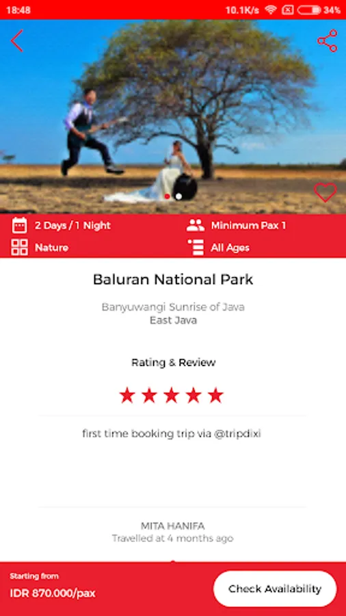 • Cancellation: 100% refund for your booking payment based on package cancellation policy