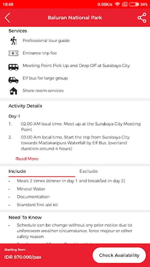 • Package information: each trip package came with description, detail itinerary and maps