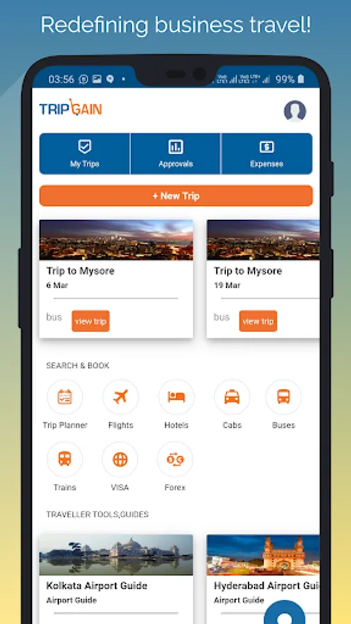 Tripgain offers an integrated Travel and Expense management solution for Corporates and Individual business travellers. With a comprehensive tool it offers Approval Workflows,Policy Compliance,Missed Savings and a powerful MIS to bring savings at every step.