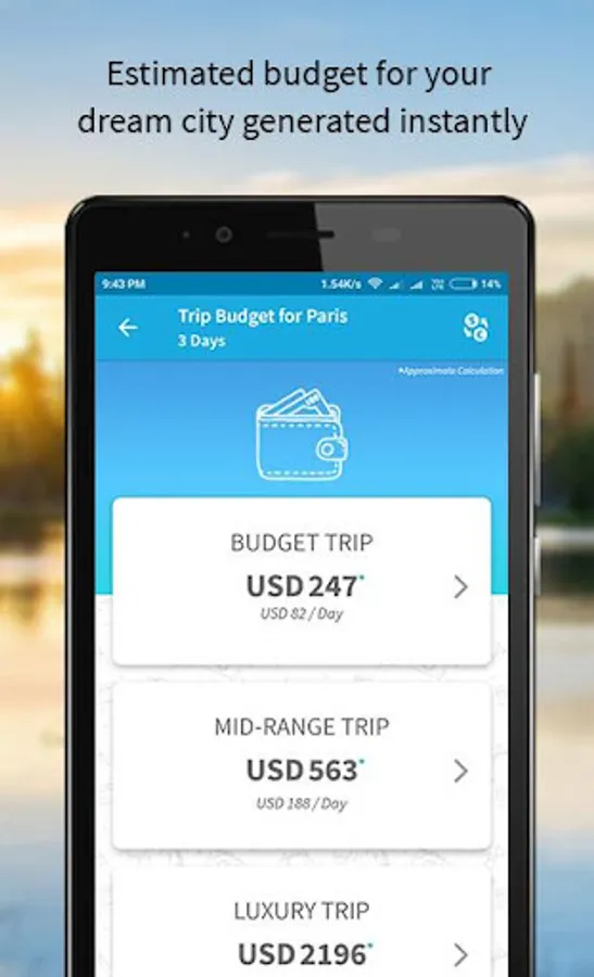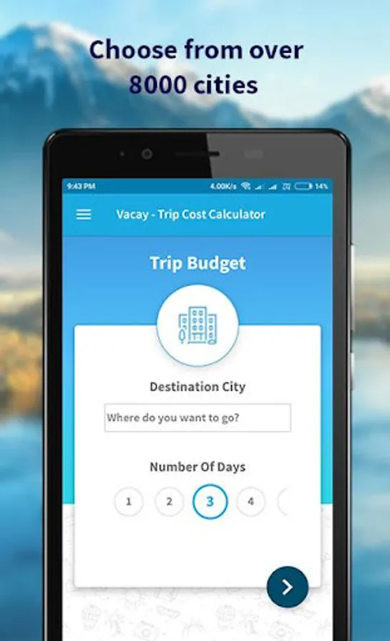 Over a million people cancel their trip plans fearing it would cost them too much. Get over your fears and start using Vacay. This vacation cost calculator will estimate the expense of holidaying in a city at the snap of fingers. Be it a weekend trip of 2 days or a long vacation of 15 days, Vacay will efficiently present you the approximate expenditure in no time.