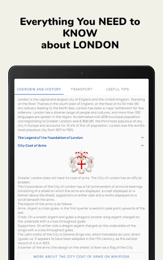 ✓ Tips & Recommendations. Useful information for travelers will help to prepare for the trip and quickly navigate in London directly after arrival, namely: information on public transport, hotels, culture, as well as useful tips for organizing leisure, safety and avoiding conflicts with the law.