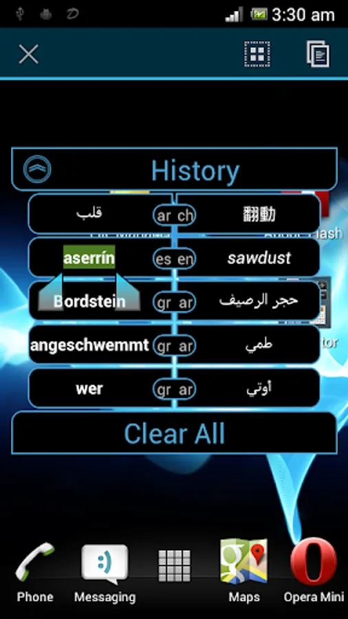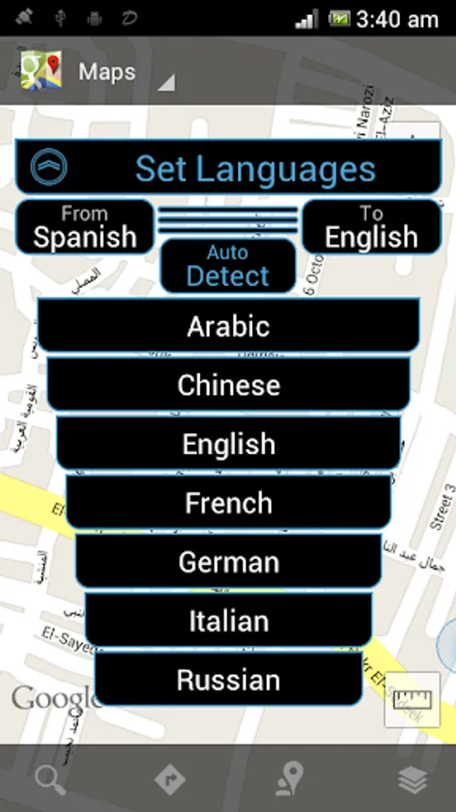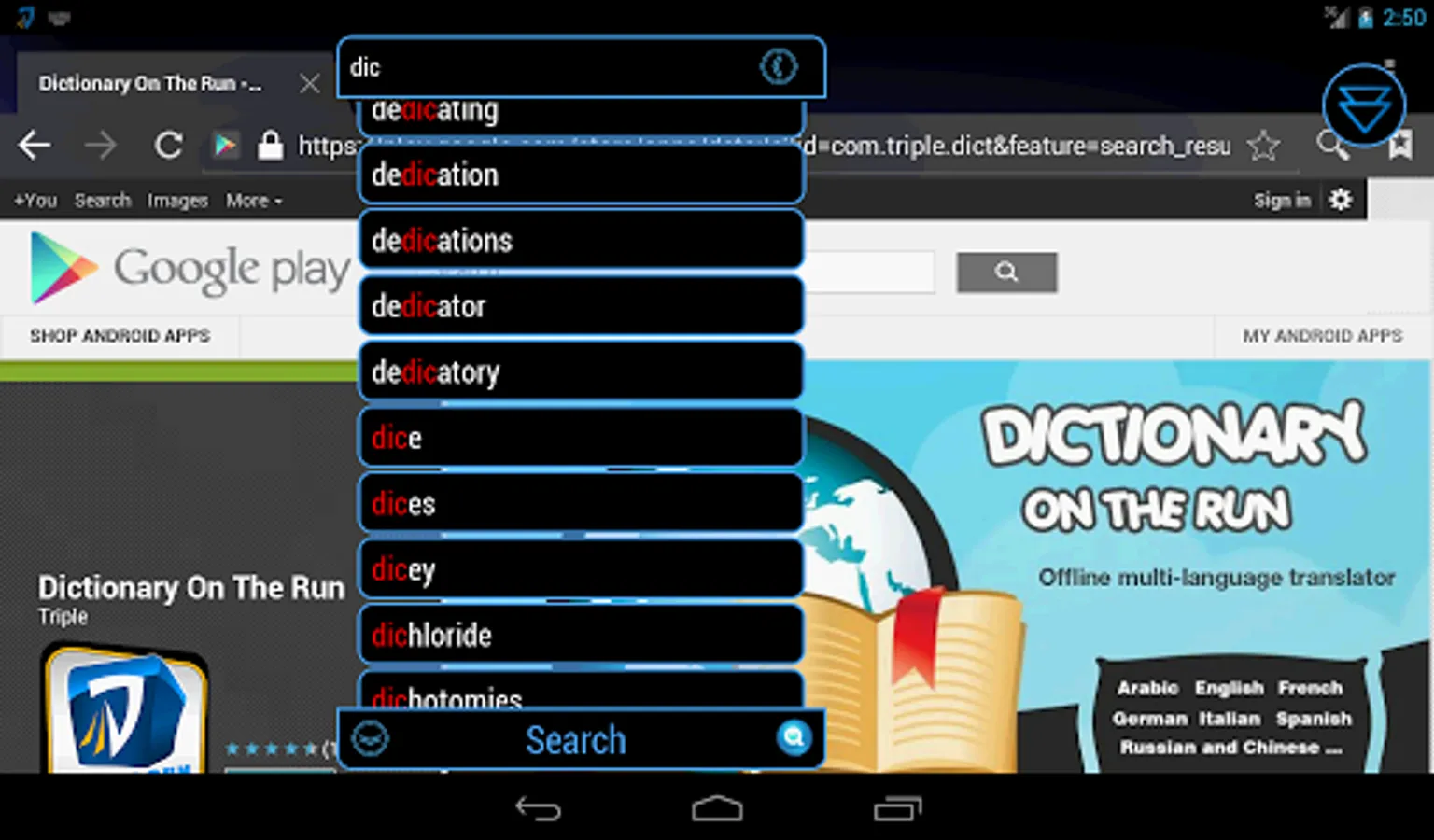 Dictionary On The Run offline multi-language translator, translates from and to any of these languages : Arabic, English, Chinese, French, German, Italian, Russian, and Spanish.