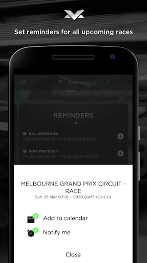 - the possibility to set notifications for all free practices, qualifying and races in which Max participates