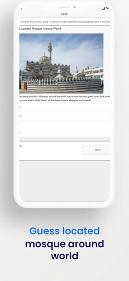 Discover the beautiful mosques around the world with using Mosque Around World App. That apps provide more interesting place to explore for those interesting in Islamic architecture. User can use Mosque Around World App to learn more about Islamic iconic and many interesting places. Mosque Around World App will help user to find the best attraction in around the world also Mosque Around World App provided the quiz. User can guess the located mosque and enjoy the experience to guess Mosque Around World.
