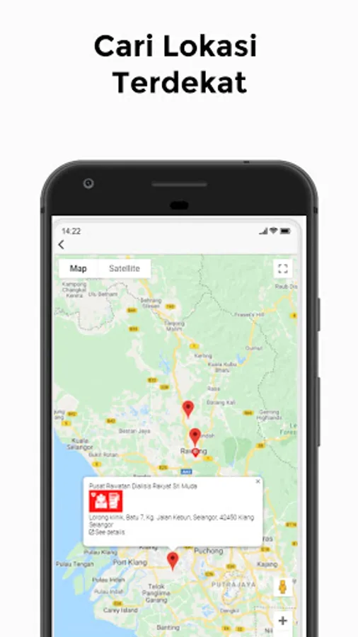 1. Carian Pusat Dialisis yang berhampiran dengan lokasi anda (GPS)