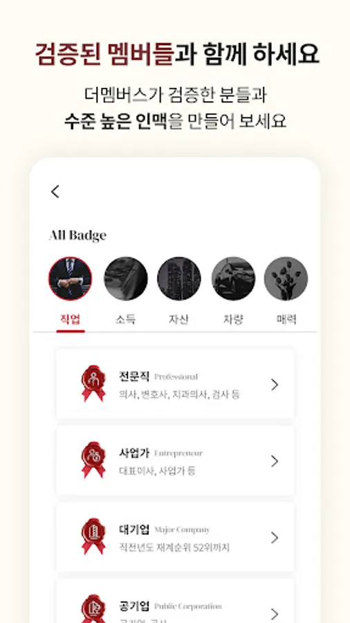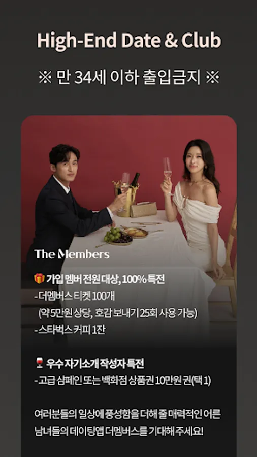 The Members was born with the desire to provide a space for new encounters suitable for people with high tastes. Triple Comma Co., Ltd., which has accumulated know-how through operating the verification-based high-end dating app ‘Gold Spoon’, is recruiting members of The Members through solid verification.