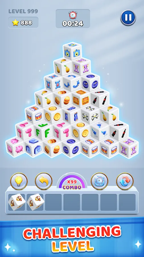 The 3D cube game shows the super creative gameplay by combining many classic board games, likes Majhong, tile connect, 3D match to a rubiks cube.