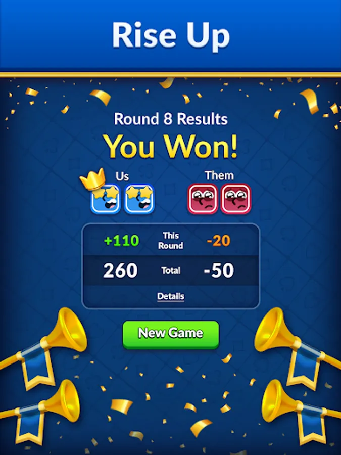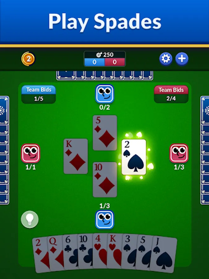 Unlimited Hints and Undos: Learn and perfect your Spades card game with helpful hints and the ability to undo moves. The ultimate way to become one of our Spades masters