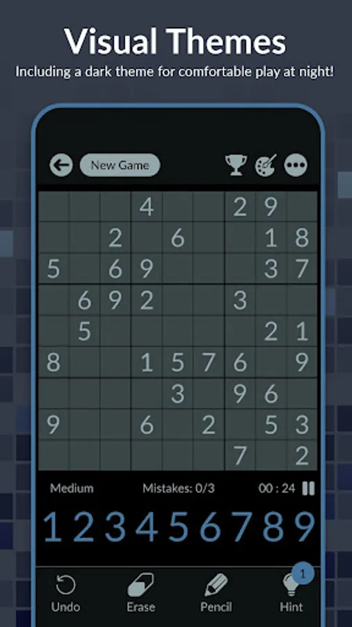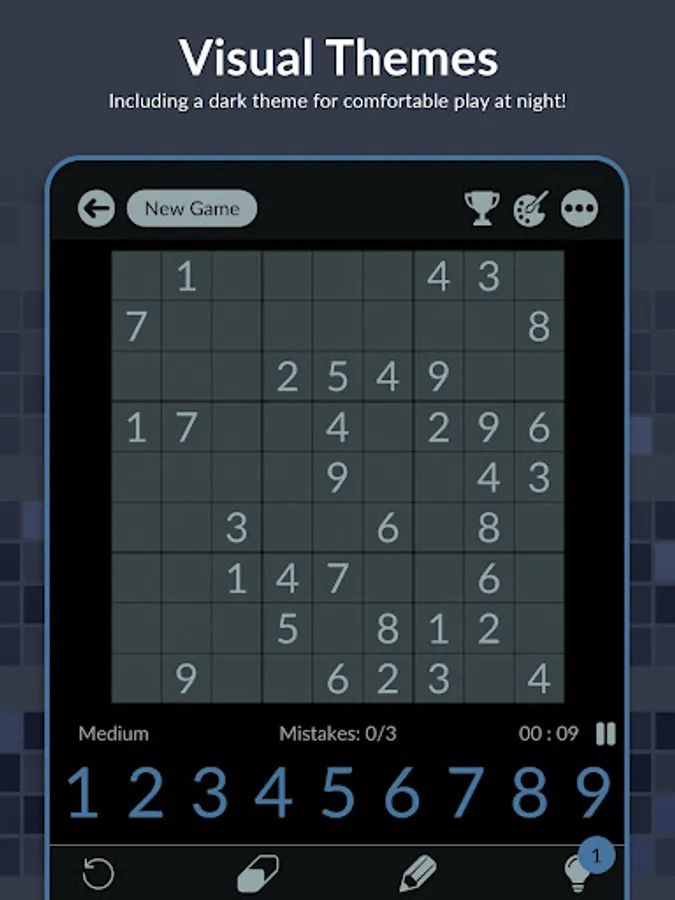 - Use the pencil mode to make notes as you solve more complex puzzles.