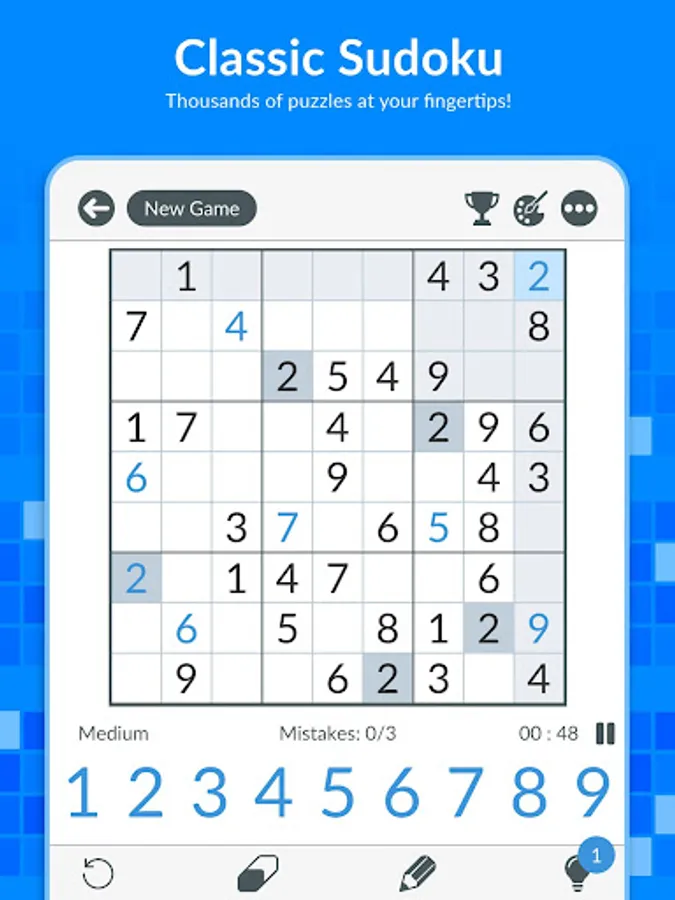 Play the classic paper and pencil number puzzle game right on your phone or tablet! Enjoy the timeless classic whether you are a beginner or an expert with our simple & elegant design.