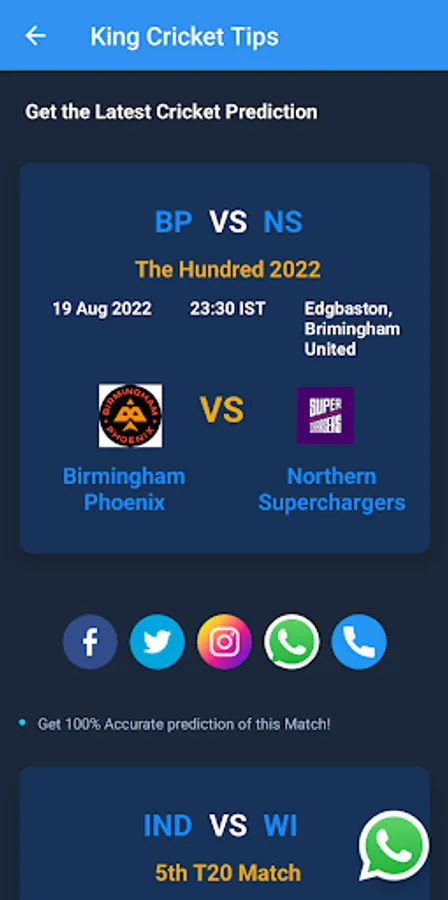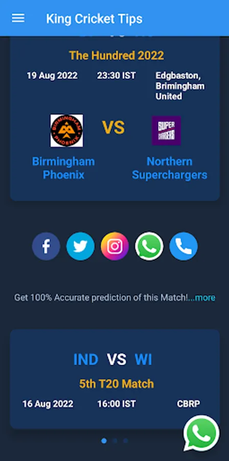 King Cricket Tips provides recent cricket matches details for International and League matches. Match details like teams, event date, timings, venue.