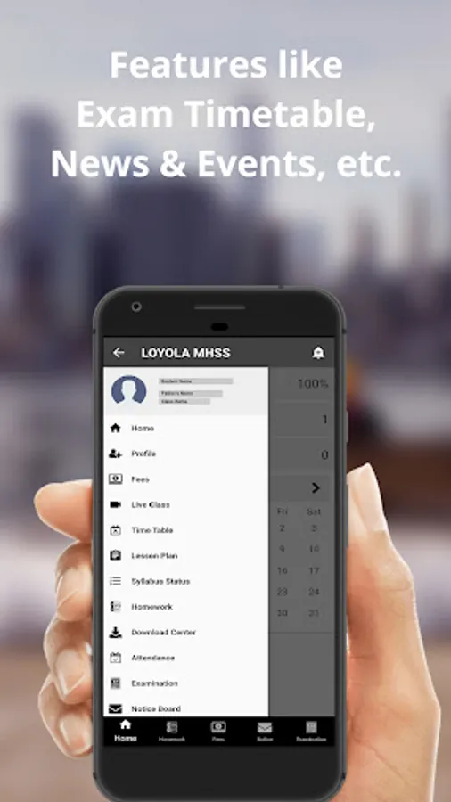 An easy to use and complete solution for Parents including Attendance Management, Exam result, Fees info, Transport Details,Home work Details, School Event Calendar, Notices Board for Parents, Time Table, etc