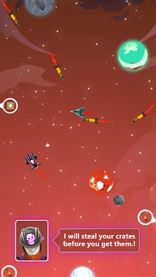 - A pursuer space ship will randomly appear to steal your items. Will you be the fastest?