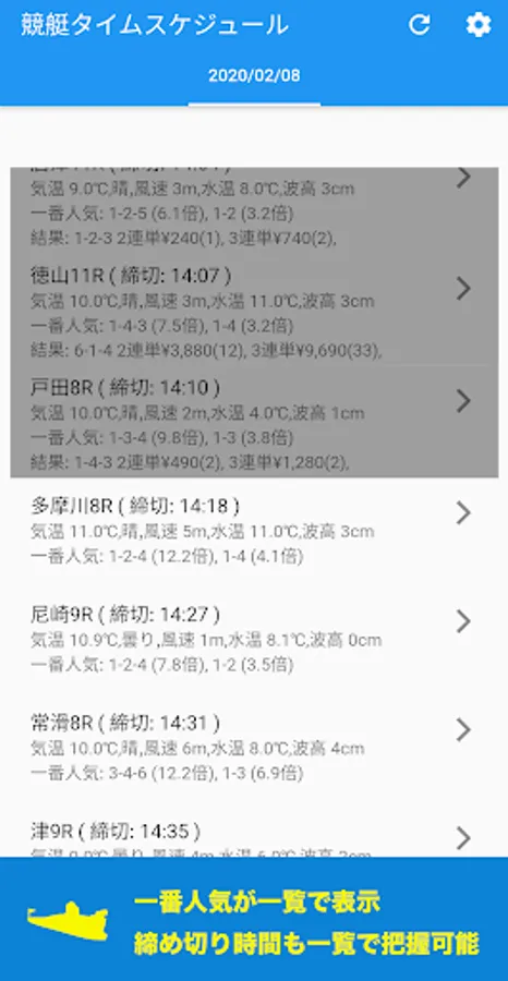 It is an application to check the boat race schedule of all venues on the day.