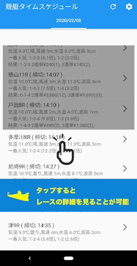 By tapping the race, you can display the official information of BoatRace.