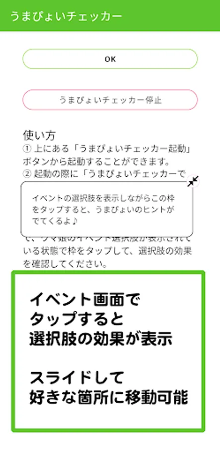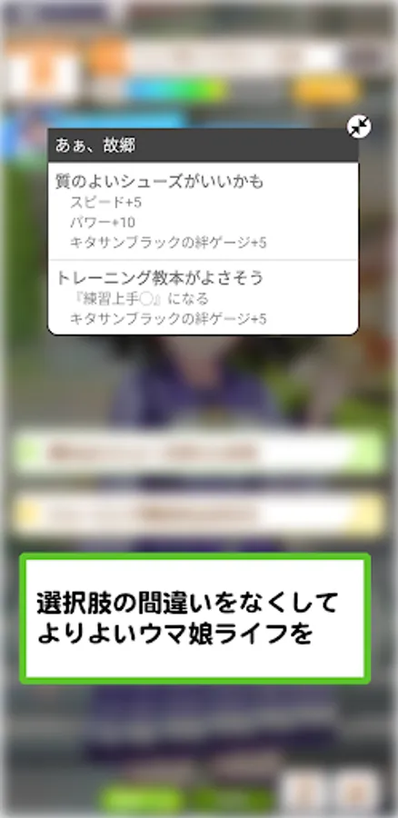 It is a convenient application that can display the effect of choices while Uma Musume is running!