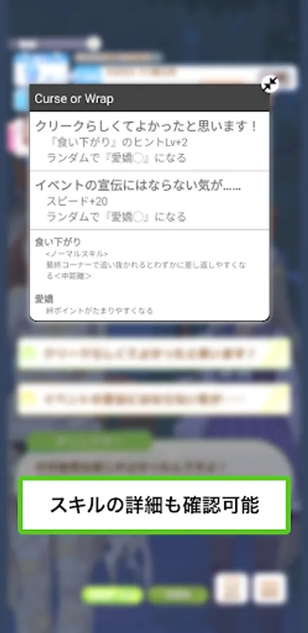 You can redisplay the option effect by tapping it again, so if you find an option you are unsure about, tap the item in the Umapyoi checker.