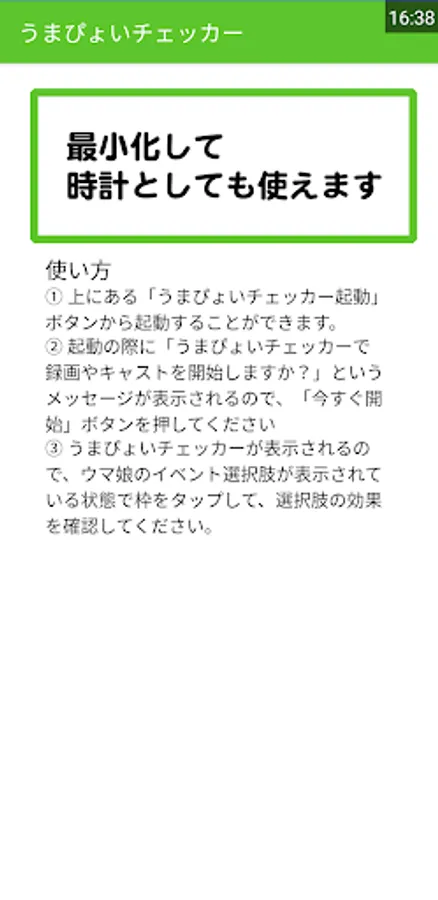 "Do you want to start recording or casting with Umapyoi Checker?" Will appear, so tap "Start Now".