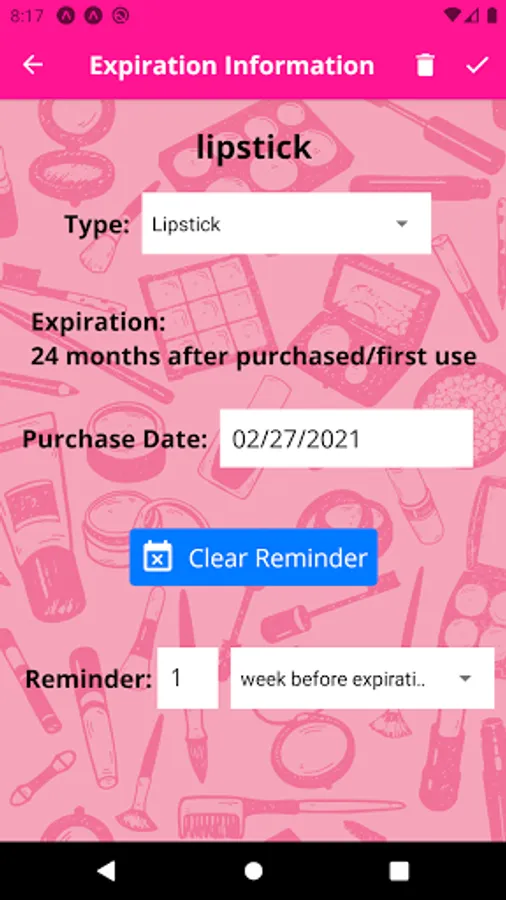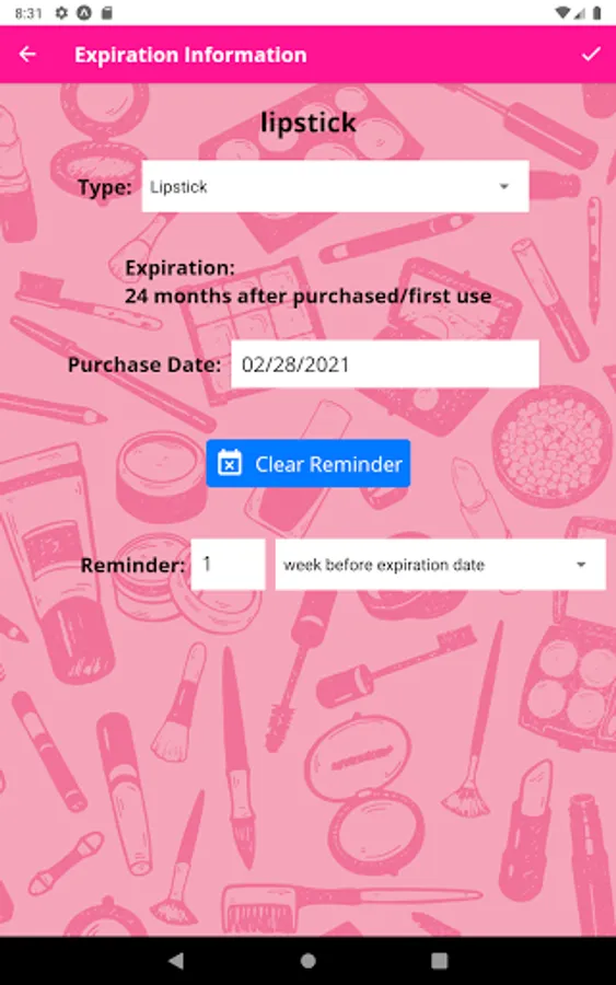 - Set reminder for cosmetic expiration