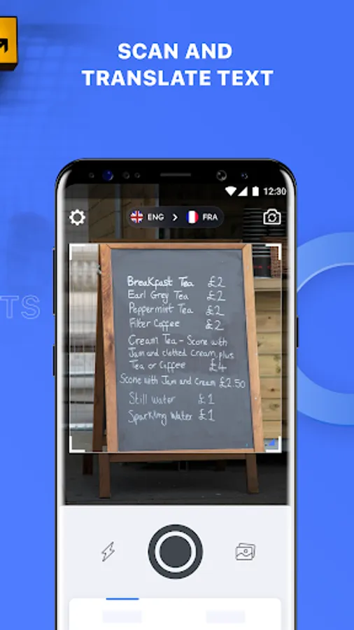 - Text mode: Take a photo of a document with pages or upload a photo from your gallery. Triplens will scan the text and translate it into any language you want.