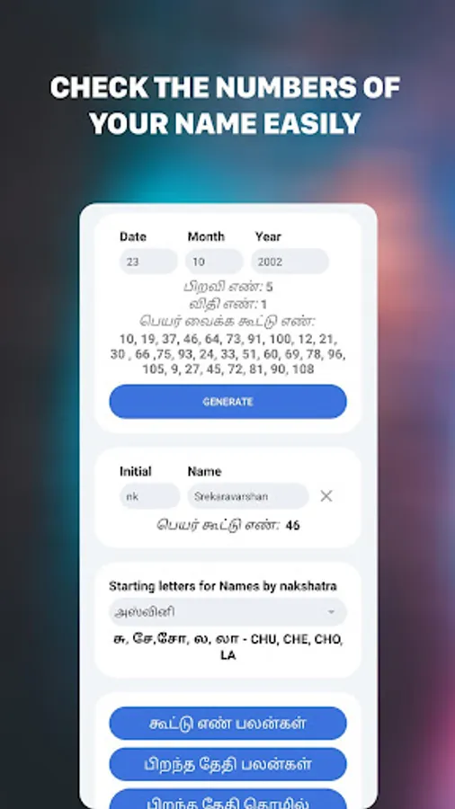 It explains the benefits from your date of birth, starting letter of your name,
