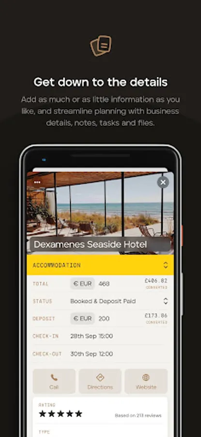 Attach tickets, booking confirmations and other useful information to your itinerary for easy access.