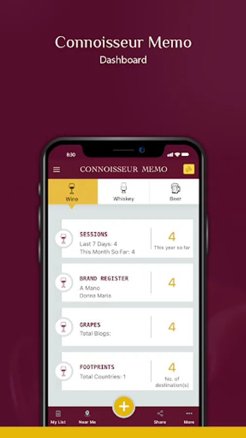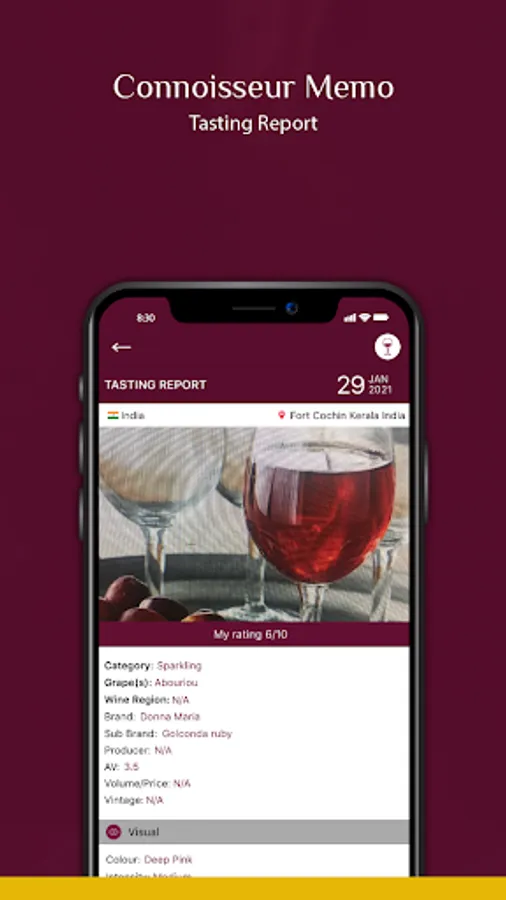 Connoisseur Memo is a tasting & logging app designed for Wine/Whiskey/Beer lovers. The app walks users through the intricate processes of various phases of wine tasting and guides them to pin down the distinct traits and separate the stratum of the innate flavours of these beverages. It enables the connoisseurs to keep a record of their observations, experiences and preferences for future reference.