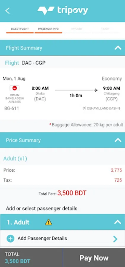 BOOK - Check all the details entered. Check baggage allowance and snapshot of your selected flight and process confirmation of the ticket.