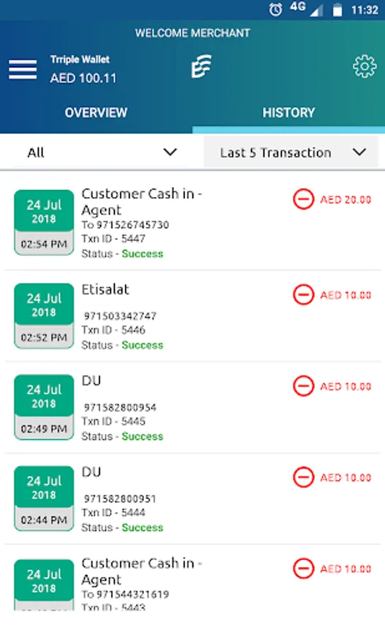 - Provide Cash-in services to Trriple mobile wallet users across the UAE.