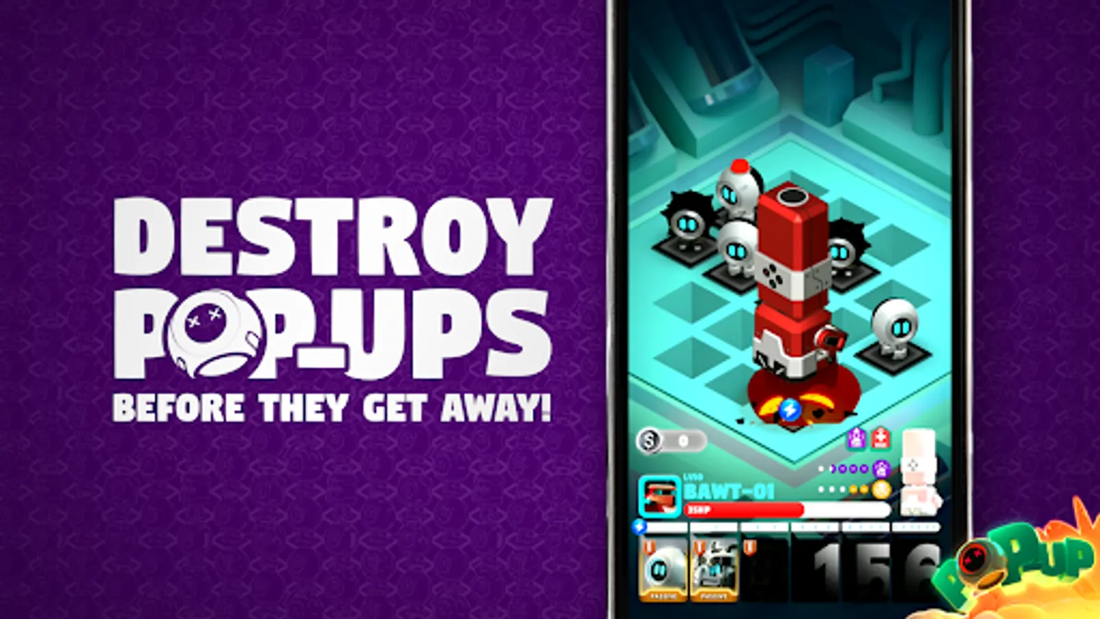 Destroy Pop-Ups before they escape to preserve HP and recollect syphoned power charges. Deploy your own team of Pop-Ups and fill up your Popper's power charge to unleash its ultimate finisher!