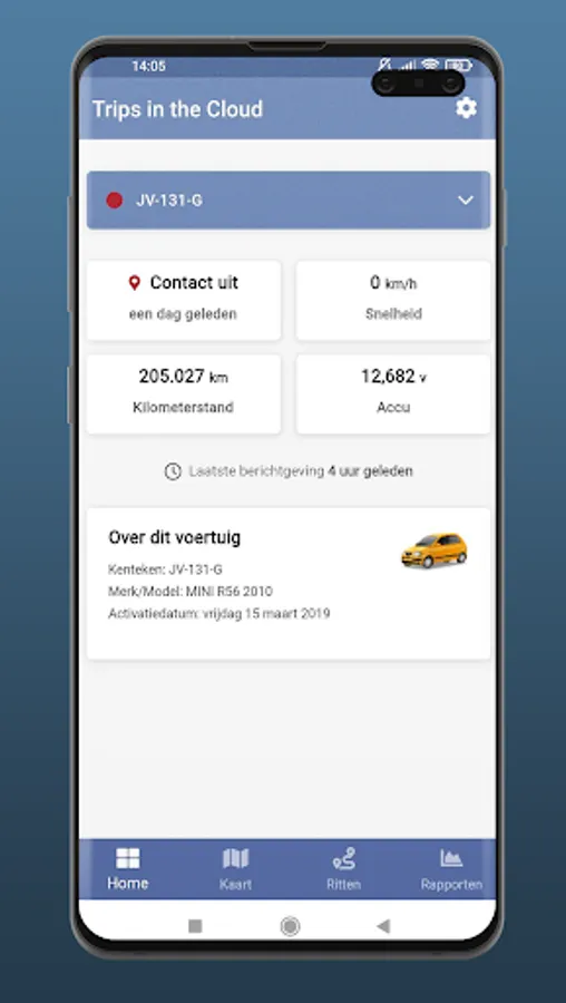 To use this App, you must have a GPS from TITC in your car. This can be a plug & play GPS that you buy from TITC and that you plug into the OBD2 connection of your car without an installer. You can then view all your journeys via the website www.tripsinthecloud.com or via this App.