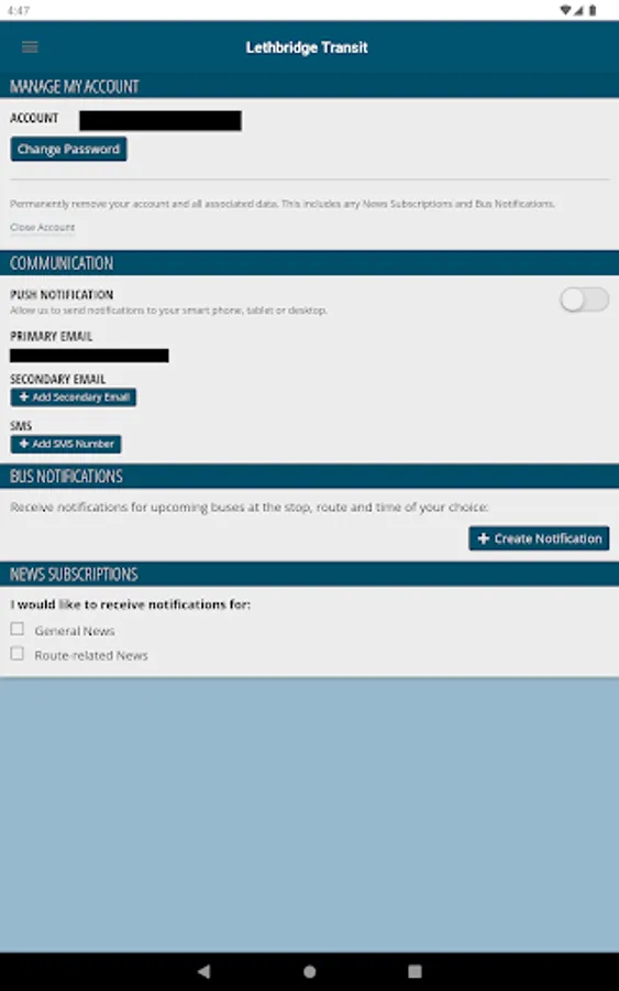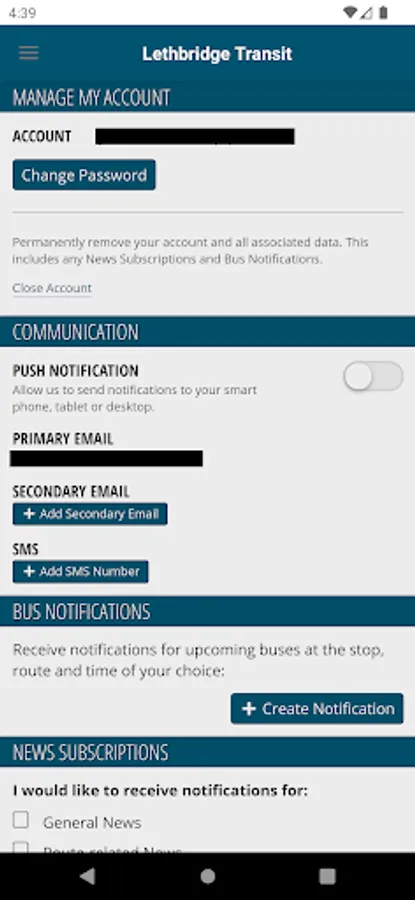 With the Lethbridge Transit account you can subscribe to the transit news you need. Subscribe to any or all of the routes and get route specific information that you need for your trip.