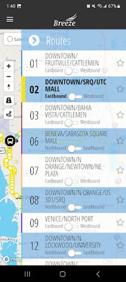 Breeze Rider app is designed to help new and current SCAT riders navigate Sarasota County Area Transit’s bus system. Users can browse route maps and schedules, or select the “Plan a Trip” feature to generate information for a specific starting and ending destination. The app tracks buses on the map in real time and provides estimated arrival times. Users may opt to receive notifications about service changes, route delays and detours, and other time-sensitive announcements. Additional information about SCAT programs and services is also available through the app.