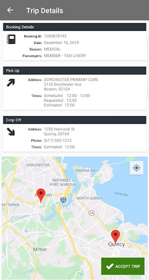 The CTS Driver App, a demand response mobile data terminal (MDT), used by the contracted and credentialed transportation provider network, allows Drivers to see previous, current, and future trips in real-time. The Driver App allows CTS to better handle same-day bookings, improve on-time performance, and increase passenger trips per hour the increased efficiency.