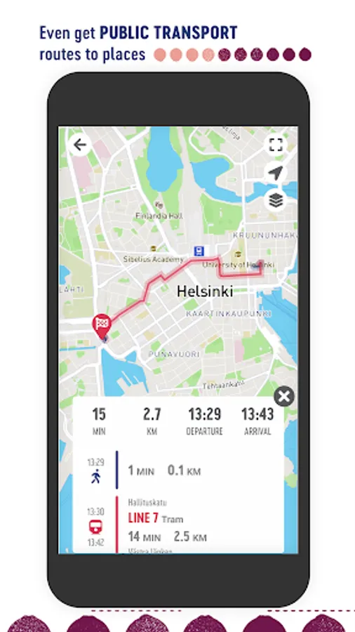 MAPS: Find places close by or places of interest on a detailed map with public transport timetables. Mark places as visited or as favourites and save the information for your next trip.