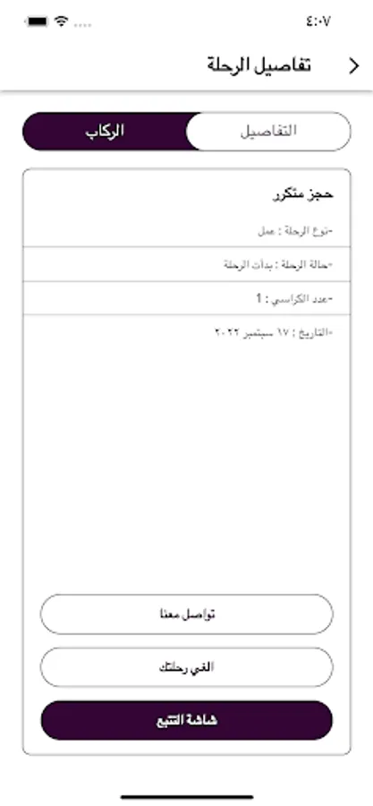يمكن متابعة خط سير الرحلات من خلال الأبليكشن، يتخلل الرحله رسائل لمعرفه التحركات والوصول.