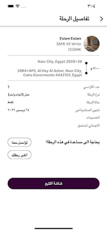 يمكن متابعة خط سير الرحلات من خلال الأبليكشن، يتخلل الرحله رسائل لمعرفه التحركات والوصول.