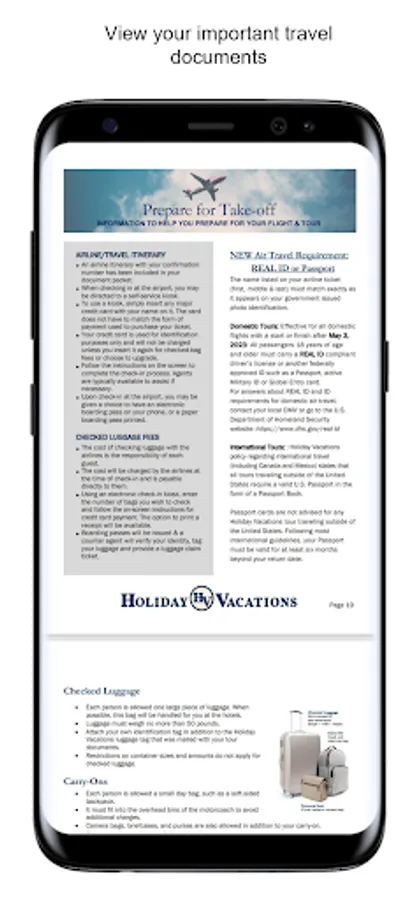 Download the Holiday Traveler App and store all your travel information in one convenient hub. You’ll have access to:
