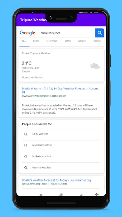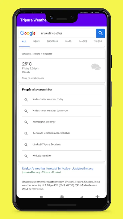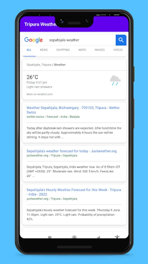 Where user can get all places weather of Tripura. Tripura weather app all data collects from google.