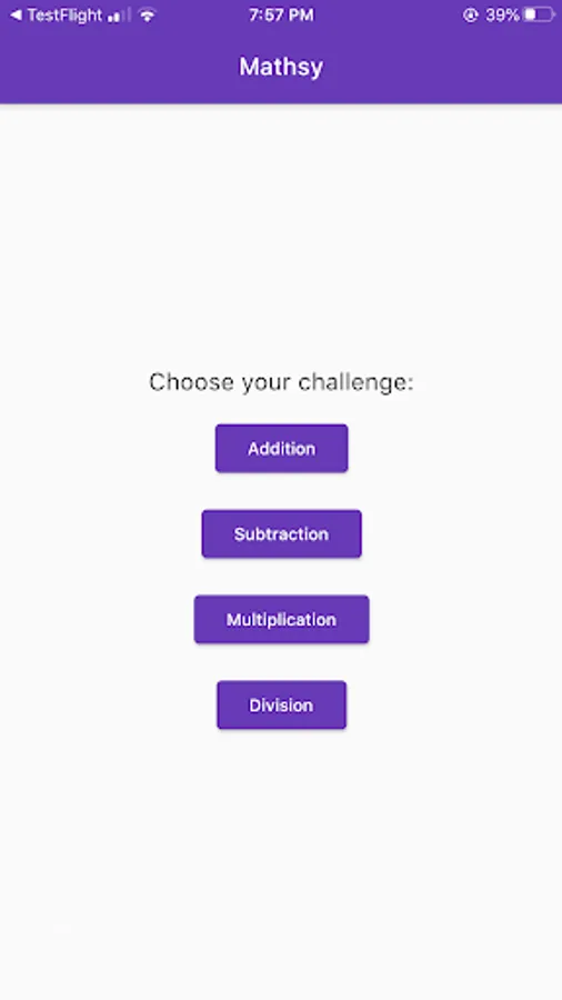 In Mathsy, you can complete math challenges to suit any skill level. The options provided are addition, subtraction, multiplication and division.