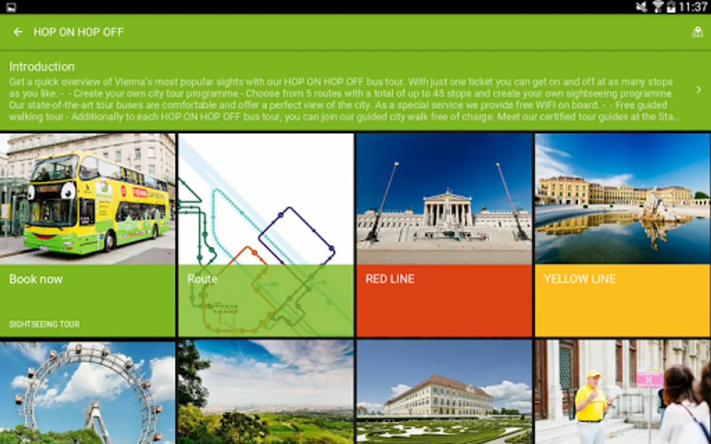 Easily check the schedule, routes, descriptions, pictures and prices of each bus tour by VIENNA SIGHTSEEING from within the app. You can even book it right there.