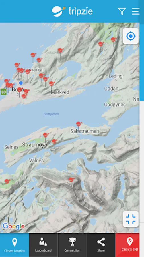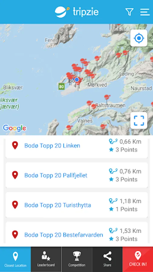 Det ligger i dag ca 2000 turmål der du kan sjekke inn med Tripzie. Du kan også enkelt sende oss et forslag gjennom appen når du er på et sted du mener vi bør legge til.