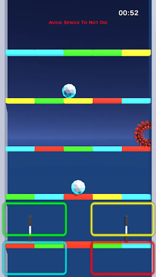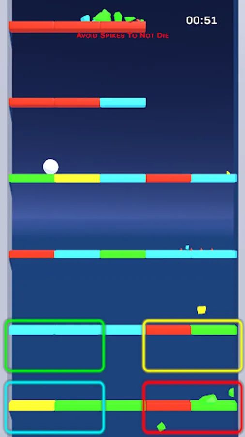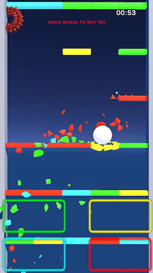 Tap to make the ball fall and navigate through a series of challenging obstacles. Timing is everything! Stay focused and keep the ball falling, avoiding the wrong colors and deadly gaps. How far can you go?