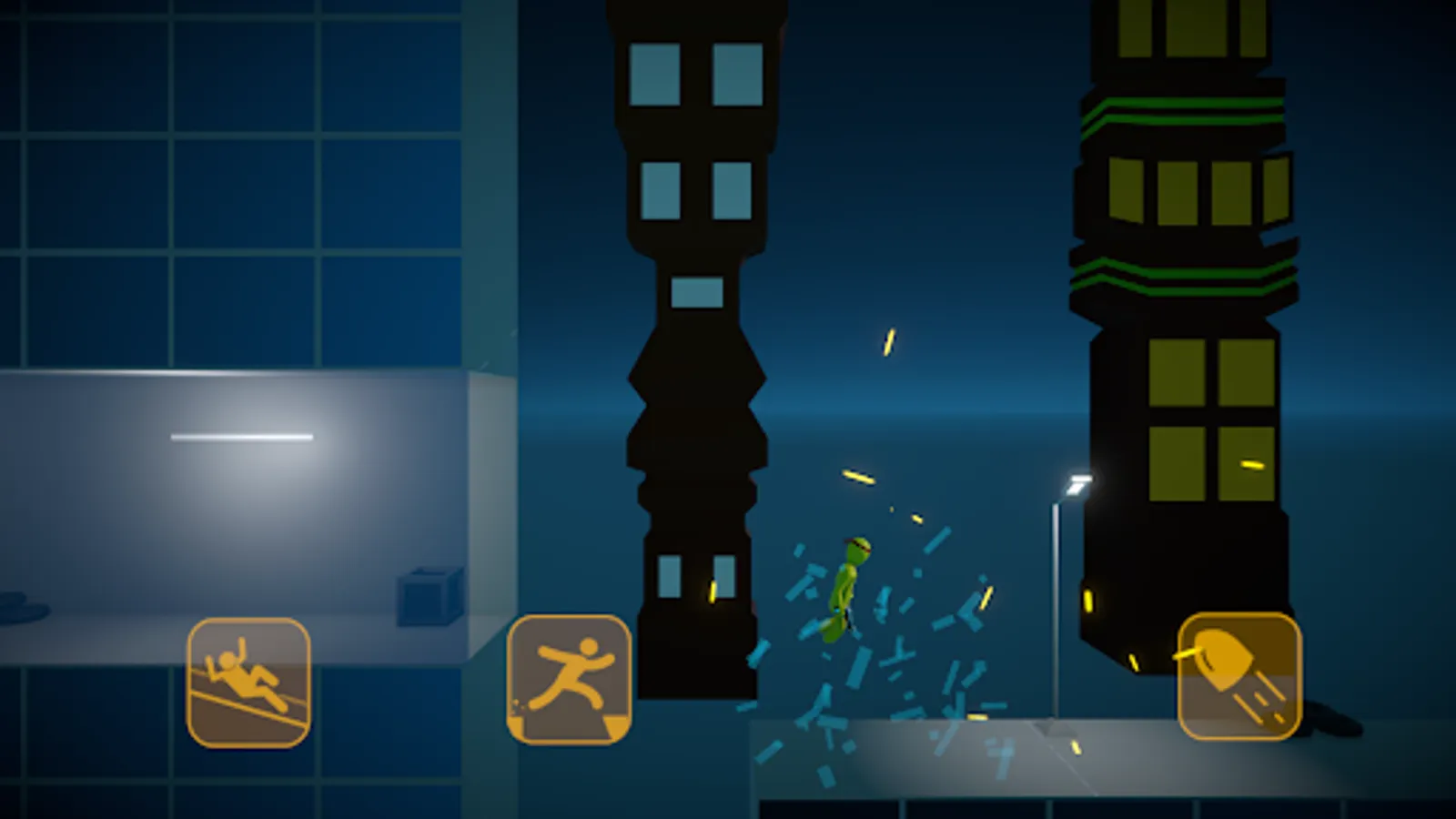 Enjoy this action runner shooting game in 3D with some parkour style. Challenges are waiting for you. Let the Ninja cross through the buildings and enjoy the thrilling experience. Jump through windows and slide under lasers to ultimately reach the end.
