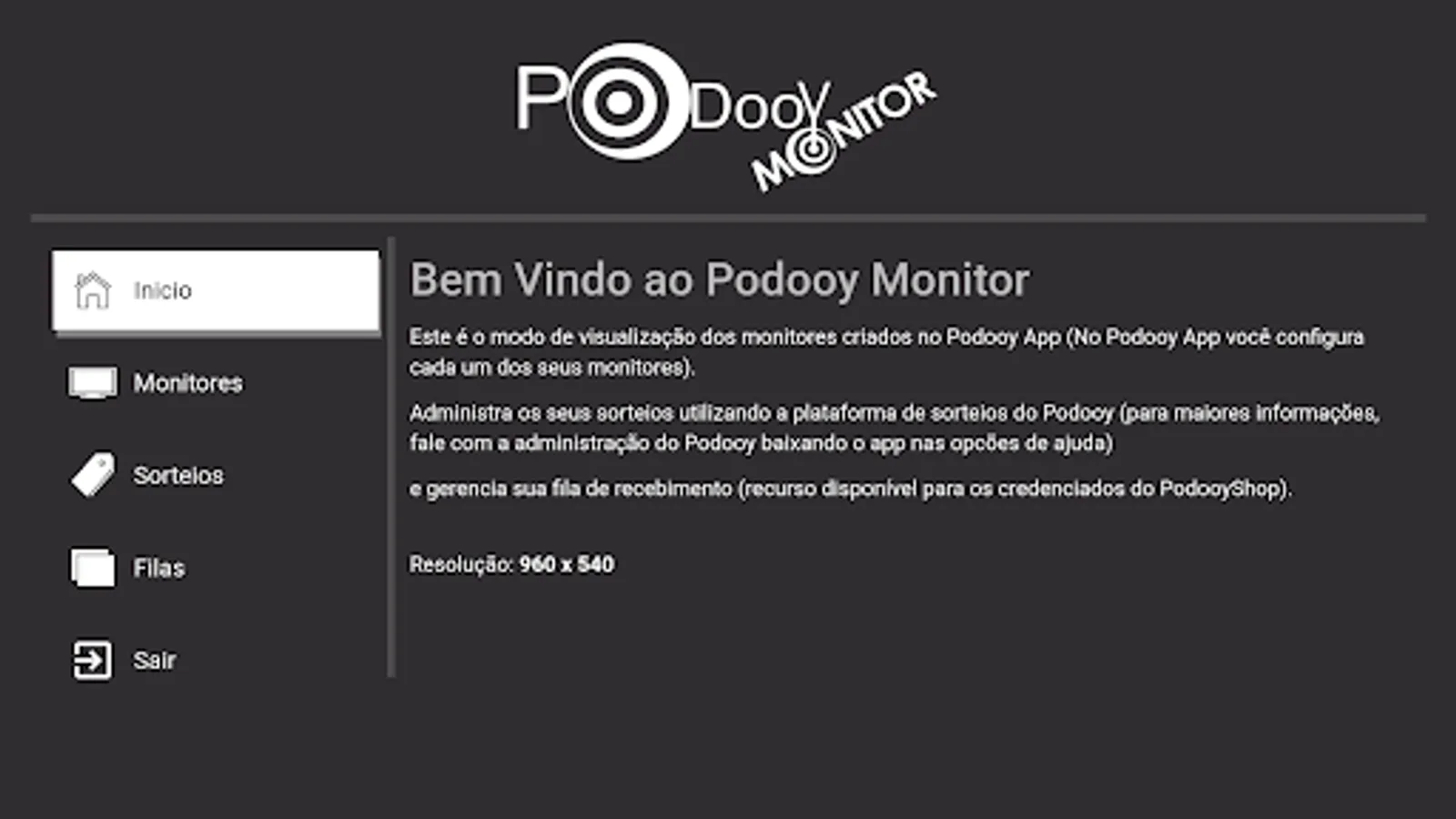 Initially created to be just the application for displaying the Monitor Resource of Podooy, it was suitable to receive other resources that are for strategic use in monitors (draws and order receipts).
