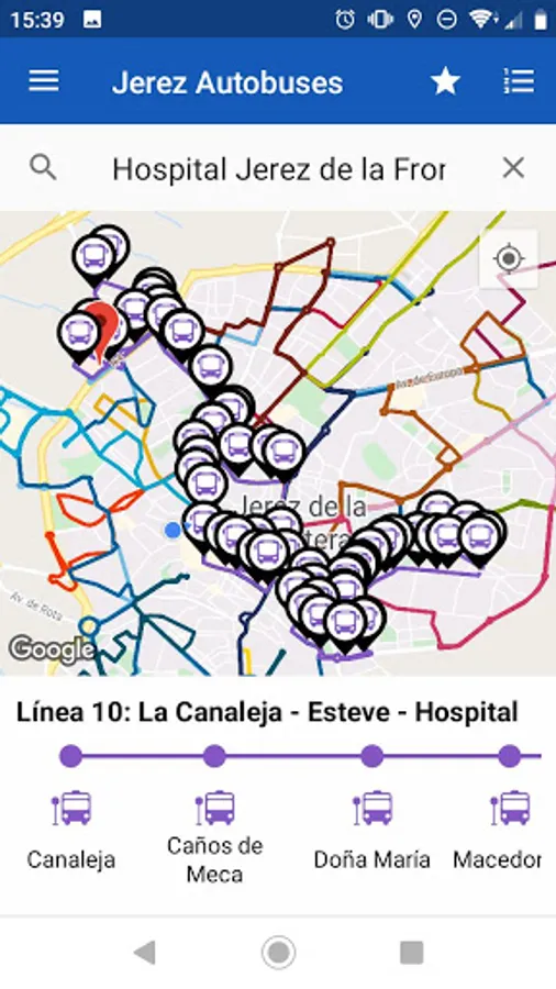 This application arises with the intention of managing more easily and interactively the information of the Jerez bus network and its schedules.