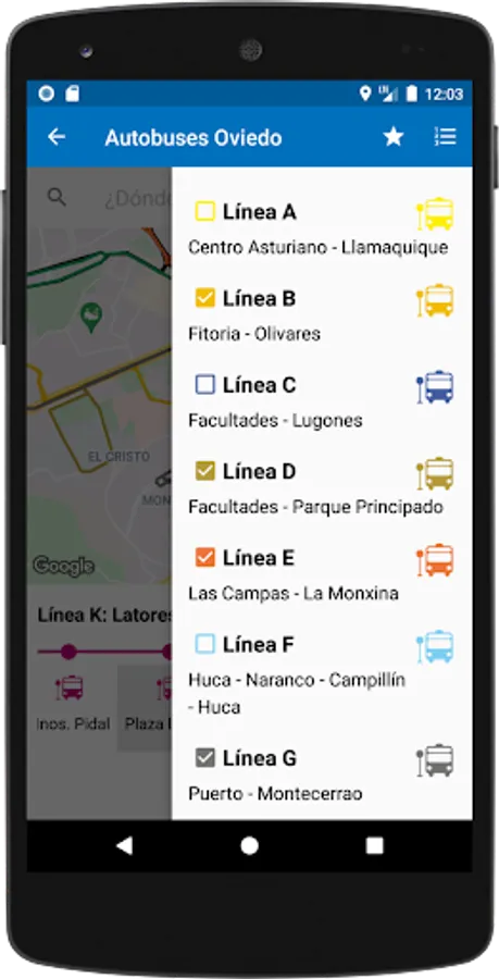 This application arises with the intention of managing more easily and in an interactive way the information of the Oviedo bus network and its schedules.