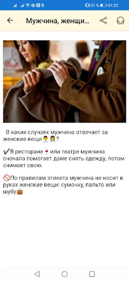 Daily push notifications on 4 topics: holidays today, jokes, phrases for reflection and etiquette.
