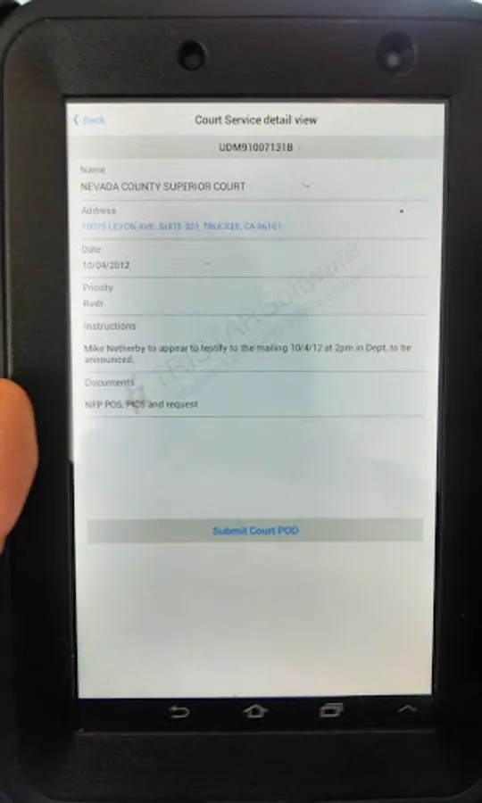 If your in the field and you want to see if any of your jobs are near your current location, just pull up the map view and see where all of your jobs are. Click on any flag on the map to get more details about that job. Process, Court, Messenger Pickup and Messenger delivery are all color coded to make it simple to see what you need to do and where.